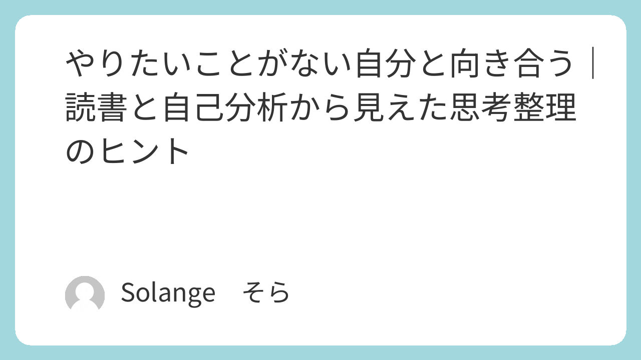 そんな中で、やりたいことがない自分と正面から向き合ってみようと思い、読書を通じた自己分析を始めました。明確な答えは出ていませんが、この思考整理のプロセス自体に何かヒントがあるような気がしています。