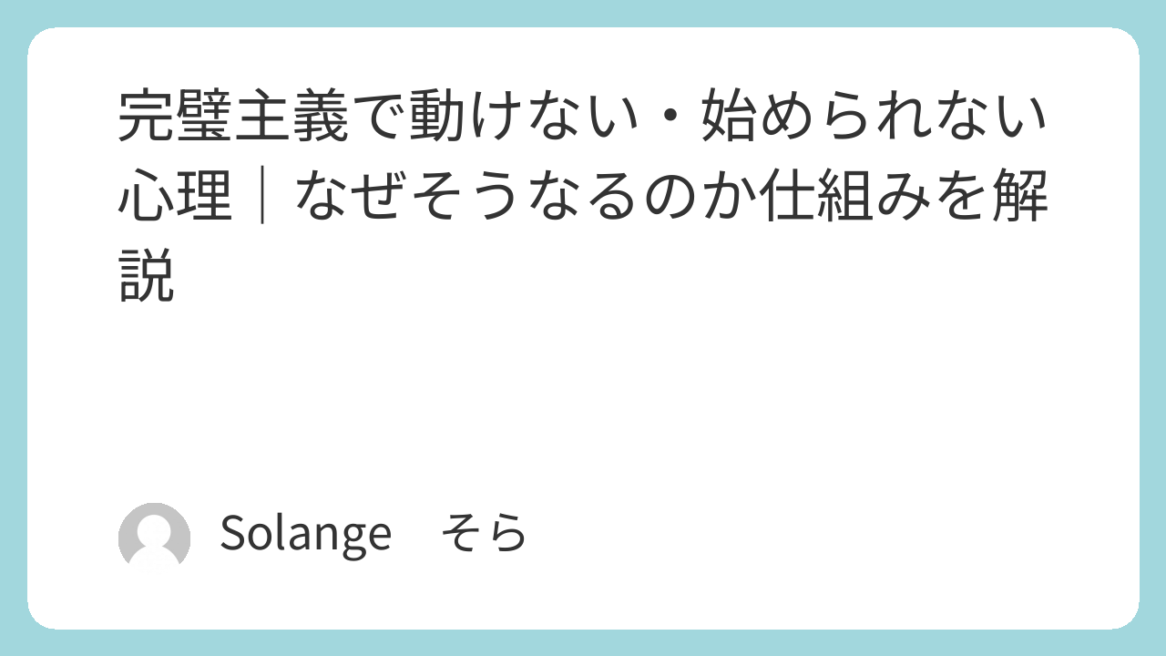 今回は、なぜ完璧主義の人が動けなくなってしまうのか、その心理的なメカニズムを私自身の体験と調べた内容をもとに整理してみました。自分の状態を客観視することで、少しでも現状を理解する手がかりになればと思います。
